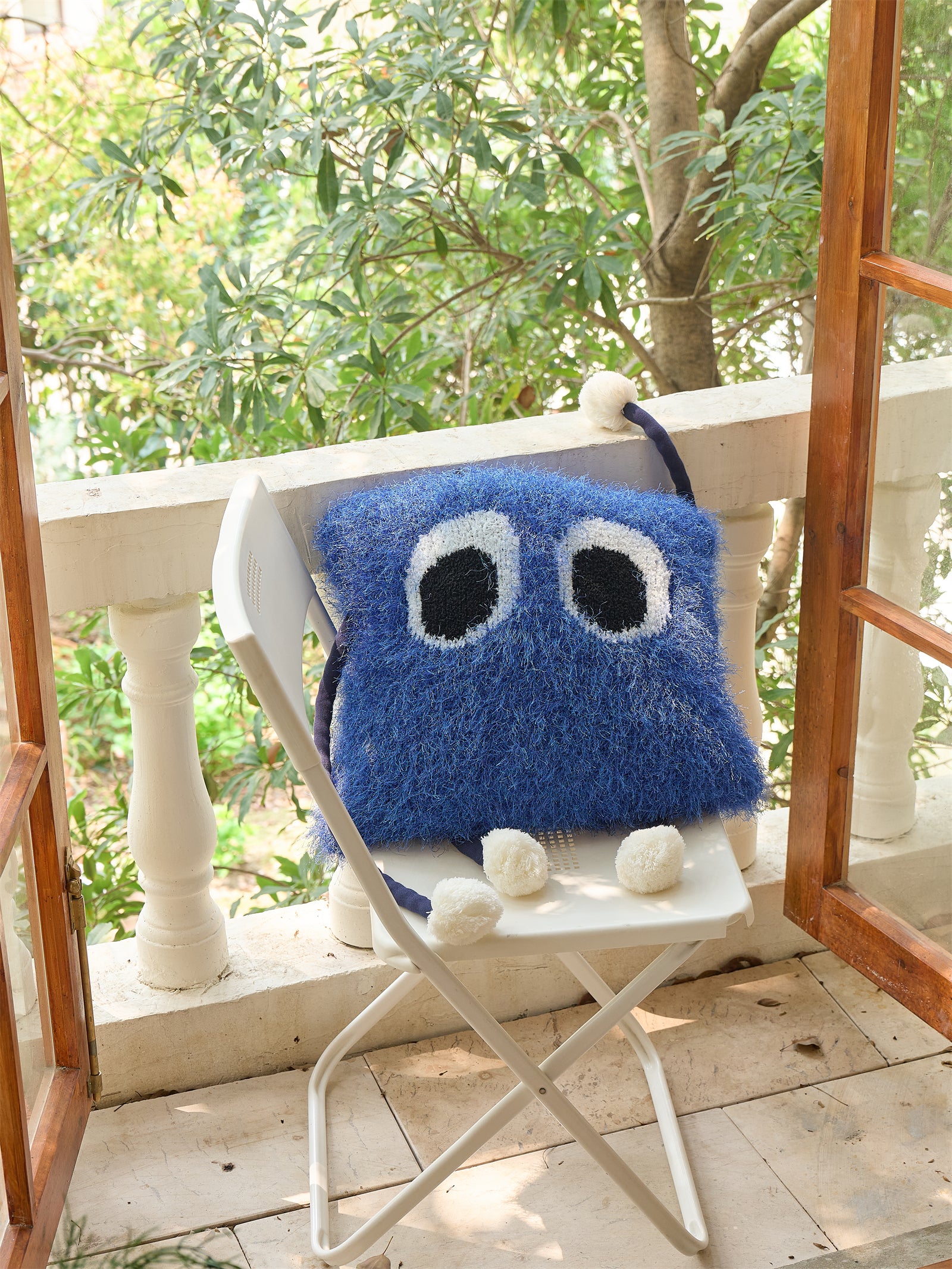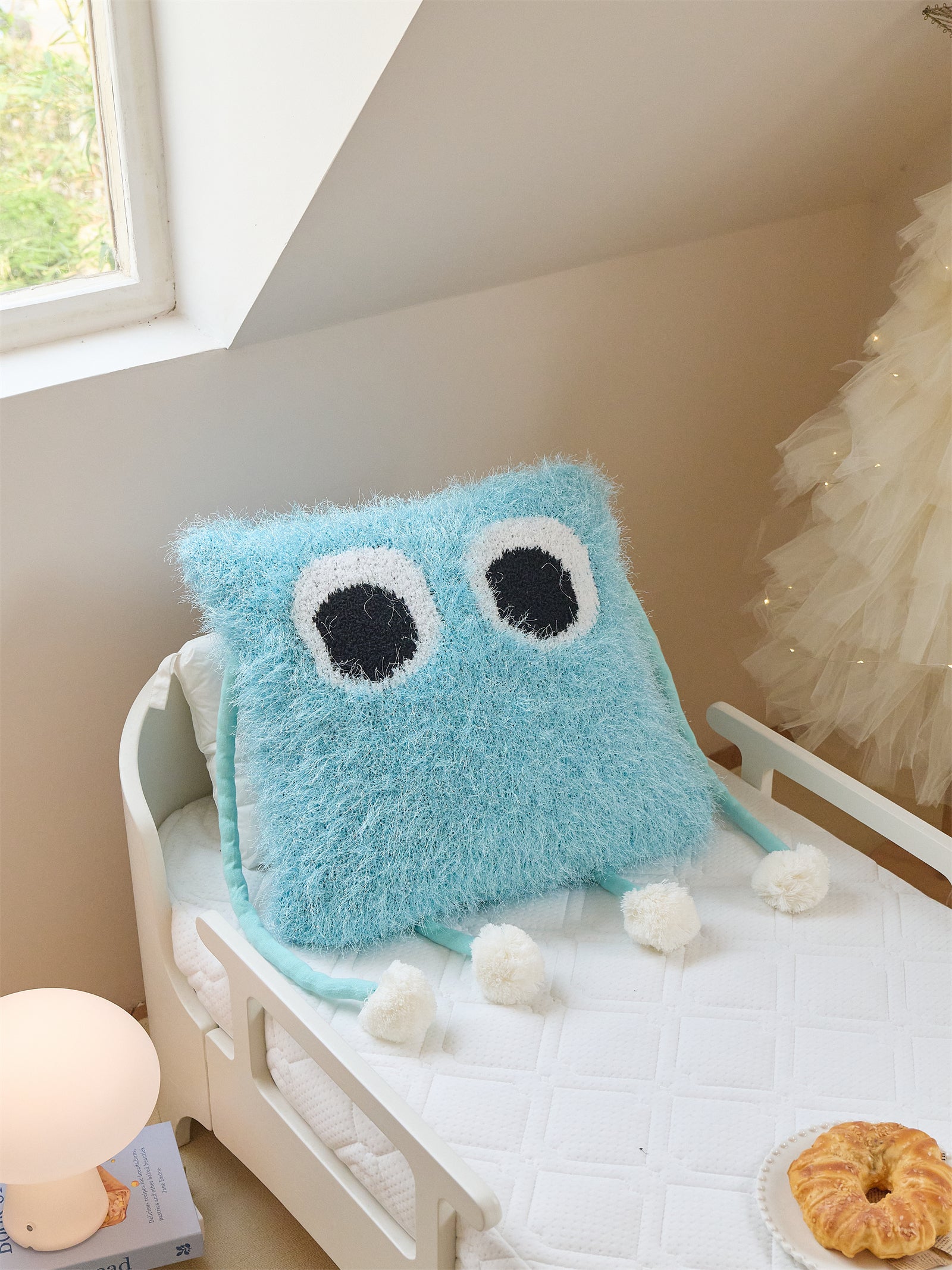 Fuzzy Square Pillow with Cute Big Eyes